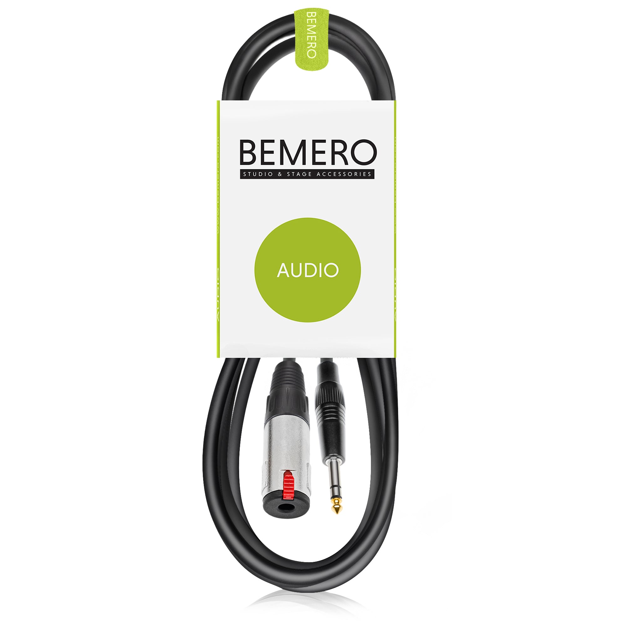 In der Tat handelt es sich bei TRS, Klinken und Jack immer um ein und denselben Stecker bzw. Buchse. Wobei der Schaftdurchmesser bei der "normalen" Grösse ¼ Zoll (6.3 mm) beträgt. Steht der Zusatz "Mini" davor, ist damit die kleinere Version mit 3.5 mm Schaftdurchmesser gemeint, welche jedoch bei Standard Mikrofon- und Linekabel keine Anwendung findet. So wie "Klinken" der deutschsprachige Begriff für diese Steckerverbinder ist, stammen die Namen TRS und Jack aus dem englischsprachigen Raum. TRS wird abgeleitet aus den drei Attributen des Steckers. Nämlich Spitze (Englisch: tip), Ring (Englisch: ring) und Schaft (Englisch: sleeve). Die Stecker gibt es sowohl in Mono- als auch Stereoausführung. Als Variante werden sie jeweils auch in abgewinkelter Bauform angeboten. Anhand der Ringe kann bestimmt werden, ob es sich um einen Mono- oder einen Stereoklinkenstecker handelt. Bei der Monoausführung für asymmetrische Verbindungen (z.B. bei einem Gitarrenkabel) ist die Spitze (Englisch: tip) der Signalleiter, alles andere (Schaft) ist Masse. Wird ein Klinkenstecker für eine symmetrische Leitung verwendet, wie beispielsweise hier bei diesem Bemero Mikrofon- oder Linekabel, greift man auf einen Stereoklinkenstecker mit zwei Ringen zurück. Dabei sieht die Belegung wie folgt aus: Spitze (hot) mit positiver Polarität (+) und Ring (cold) mit negativer Polarität (-) übertragen die Tonsignale, der Schaft (Englisch: sleeve) dient als Abschirmung (Englisch: ground, GND).