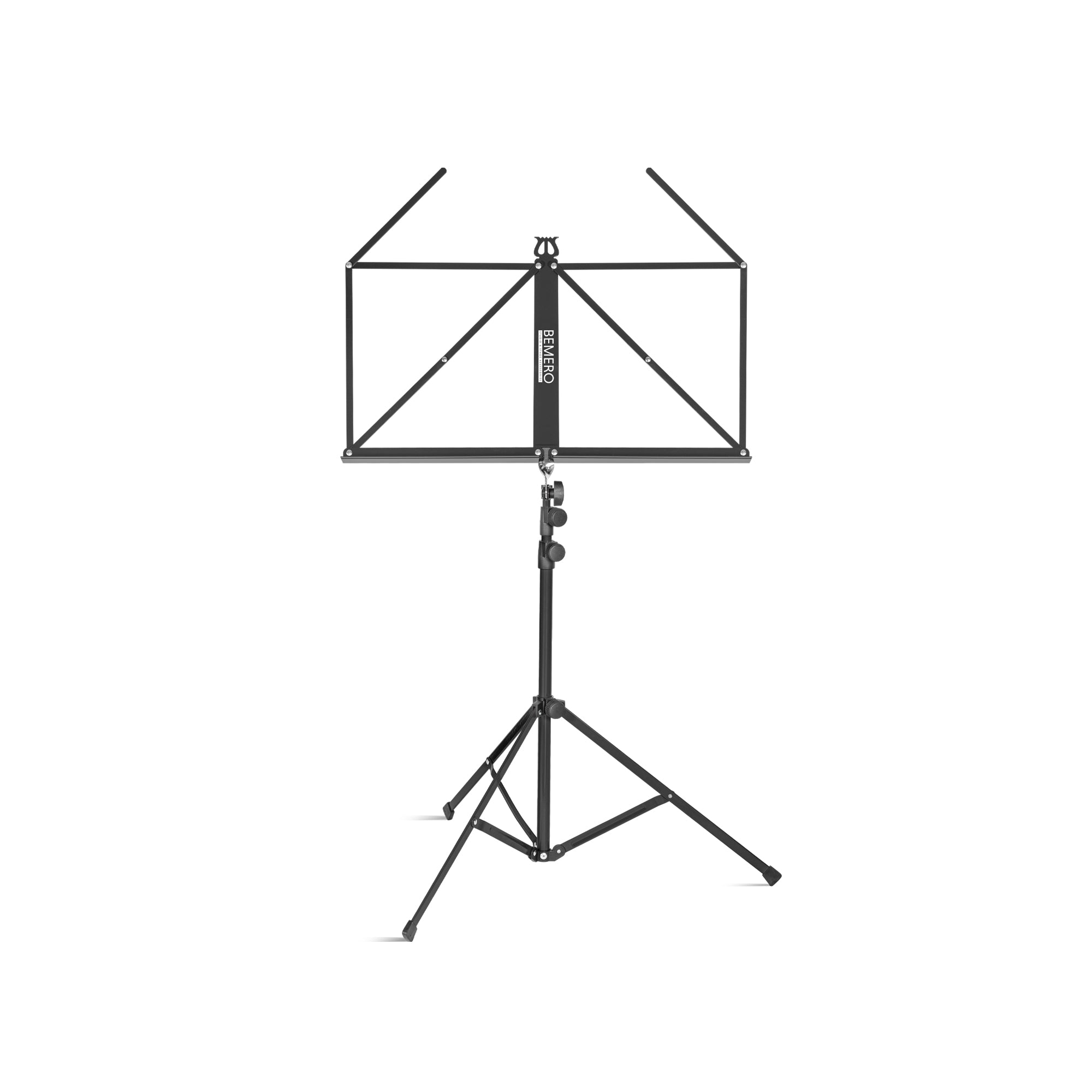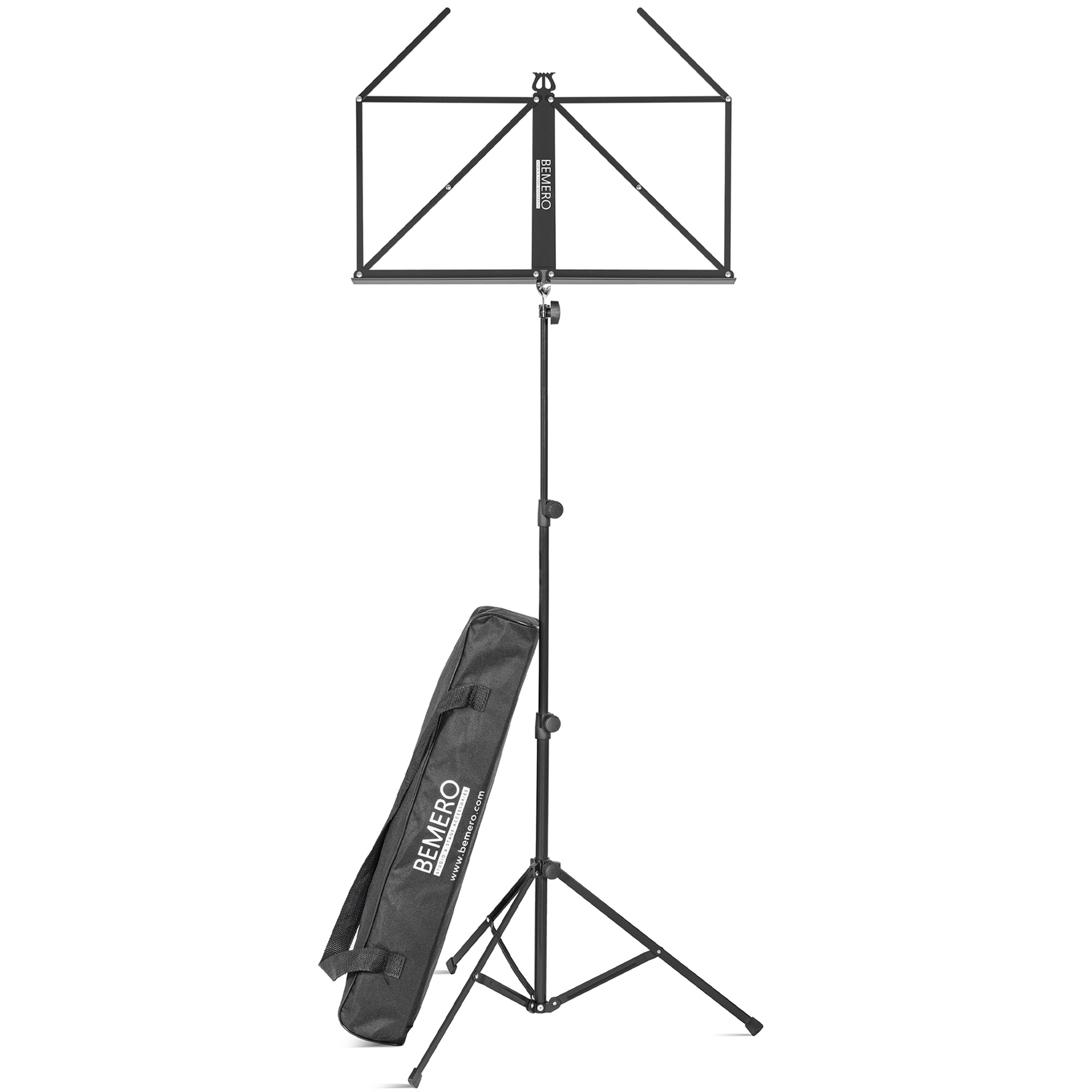 Der MSS-8090 von Bemero ist ein bewährter Klassiker unter den Notenständern – funktional, leicht, kompakt und dennoch robust. Er ist der ideale Begleiter für Musikunterricht, Proben und Auftritte. Das zweifach ausziehbare Stahlstativ lässt sich flexibel auf eine Höhe von 510 bis 1200 mm einstellen. Der faltbare Trägerkopf bietet mit 465 x 230 mm ausreichend Fläche für Notenblätter oder -bücher. Zwei variabel verstellbare Klemmbügel sorgen für sicheren Halt – selbst bei Wind. Die mitgelieferte Tragetasche mit Schulterriemen ermöglicht einen komfortablen Transport. Der Bemero MSS-8090 ist in mehreren attraktiven Farbvarianten erhältlich – für mehr Individualität und Stil. Ob im Unterricht, bei der Probe, auf der Bühne oder unterwegs: Der Bemero MSS-8090 Notenständer deiner Wahl ist für jede Situation bestens gerüstet.